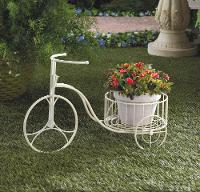 This iron metal tricycle will show off your potted plants in elegant fashion. Looks great indoors and out.
