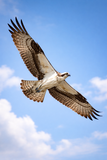 Ospreys are famous for their dramatic fishing dives. They are among the few birds with reversible outer toes, which allow them to grip slippery fish securely. After catching a fish, they turn it head-first in flight to reduce wind resistance. Ospreys are often called “fish hawks” because of their expert fishing skills.